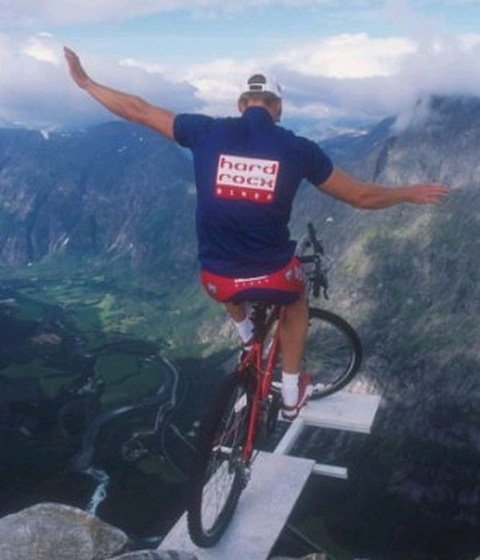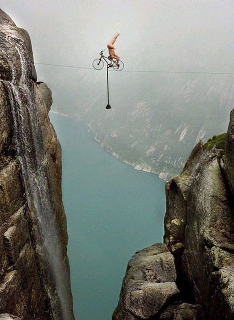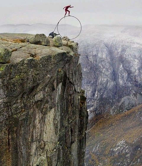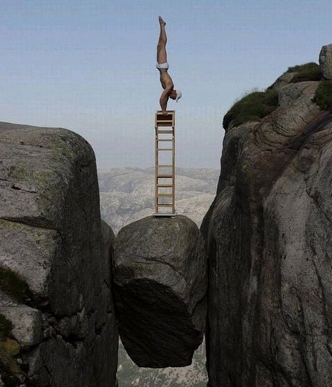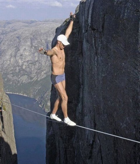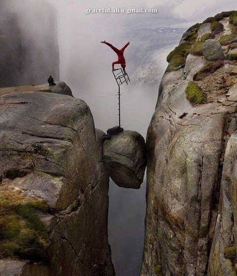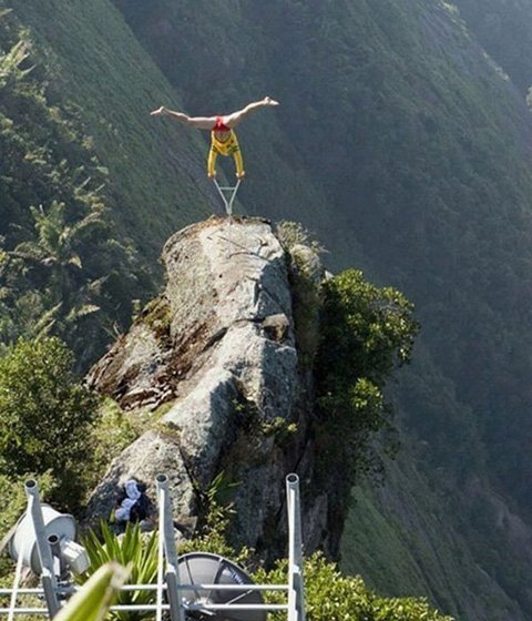 Các vách núi treo leo nhất chính là địa điểm mà tín đồ yêu thích trình diễn thăng bằng mạo hiểm cực kỳ “bồ kết”. Với một người bình thường, việc đứng trên vách núi cao tới hàng nghìn mét mà không sử dụng bất kỳ dụng cụ bảo hộ nào đã đủ hoa mắt chóng mặt, chứ đừng nói gì tới việc giữ thăng bằng.