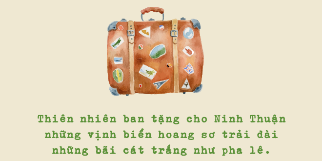 Tôi là người đam mê xê dịch. Đến năm 26 tuổi, hai lần tôi đã tự lái xe xuyên Việt, không chuyến nào dưới 50 ngày. Trong cả hai lần đó, tôi chỉ ghé ngang Ninh Thuận - dải đất duyên hải Nam Trung Bộ với đường bờ biển đẹp đến lặng người - chặng hành trình mà tôi yêu thích nhất và tự cho mình “ghi nợ”.