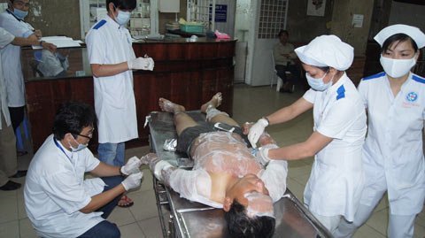 | Một nạn nhân được đưa đến cấp cứu tại bệnh viện đa khoa tỉnh |