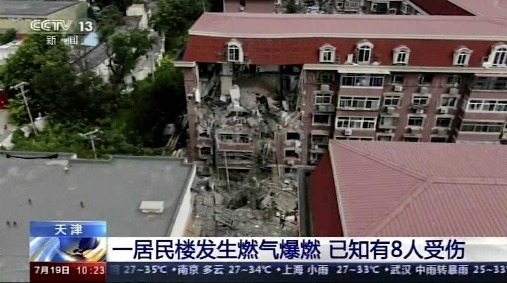 Vụ nổ xảy ra vào khoảng 7h15 sáng 20/7 tại Quận Beichen của Thiên Tân, hình ảnh tại hiện trường cho thấy phần mái của các tầng trên của toà nhà vẫn còn nguyên vẹn và không gây thiệt hại gì đến cơ sở vật chất xung quanh.