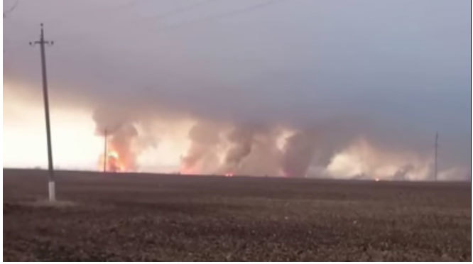 Công tố viên quân sự Anatolii Matios cho hay, nổ lớn xảy ra lúc 3h20 sáng nay (23/3), bắt đầu từ khu vực chứa tên lửa và pháo.