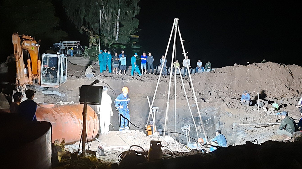 Lực lượng chức năng đã xuyên đêm nỗ lực cứu bé trai nhưng vẫn chưa tiếp cận được nạn nhân.