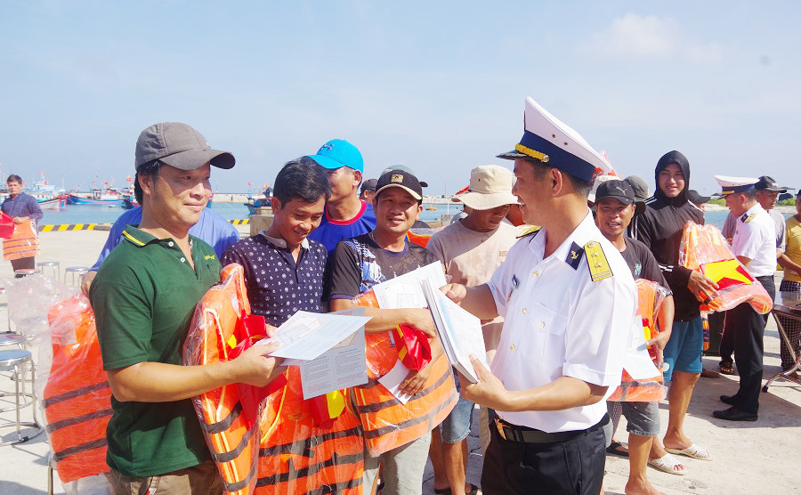 Dịp này, các đơn vị đã phát hơn 550 bộ tài liệu tuyên truyền, hướng dẫn ngư dân đánh bắt thủy, hải sản an toàn, bền vững trên vùng biển thuộc chủ quyền Việt Nam; tặng 100 lá cờ Tổ quốc, 50 áo phao cho ngư dân.
