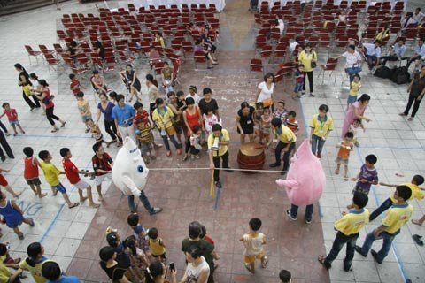 và tư vấn dinh dưỡng miễn phí cho trẻ em, các trò chơi rèn luyện thể chất.