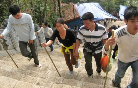 Từ cụ già tới em bé, dù sức yếu nhưng vẫn cố leo được đến đỉnh thiêng Yên Tử