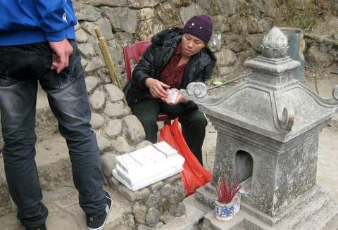 Dịch vụ đổi tiền tự phát mọc ngay cạnh am thờ của chùa Giải Oan