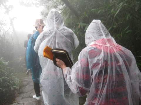 Gần đến chùa Đồng, trời mưa nhỏ, dòng người vẫn âm thầm đi, mặc thêm áo mưa mỏng