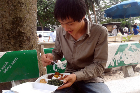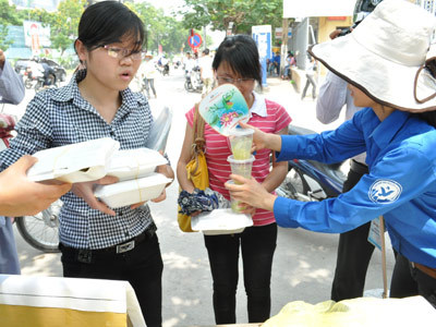 Là sĩ tử đầu tiên được nhận suất cơm chay miễn phí, bạn Vượng (Tuyên Quang), dự thi tại điểm thi ĐH Giao thông vận tải , đã không giấu được sự bất ngờ và niềm vui của mình. Bạn cho biết “ vì ở trọ xa nên em không có điều kiện về nhà , suất cơm này và sự ân cần của các anh chị tình nguyện viên làm em thực sự xúc động”