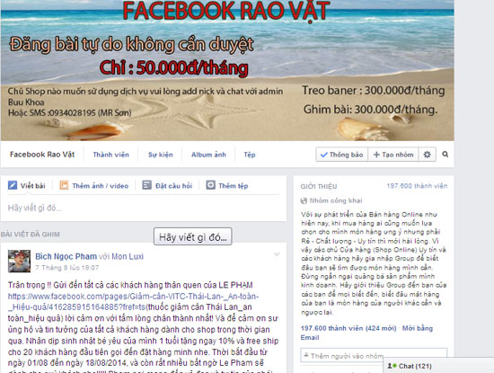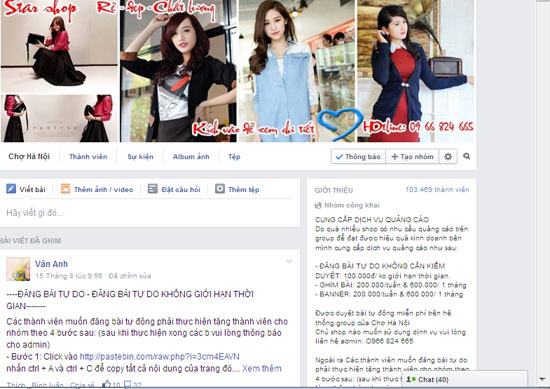 Chủ các shop bán hàng muốn đăng bài trên các hội, chợ có thu phí phải liên hệ với admin qua điện thoại, chuyển tiền vào tài khoản của admin rồi mới được rao bán sản phẩm. Trong trường hợp chưa nộp phí đã post bài vào nhóm sẽ bị xóa nick vĩnh viễn.