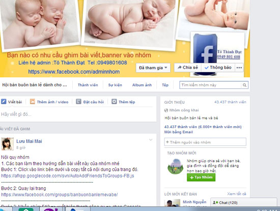 Phóng viên ICTnews đã trực tiếp tham gia khá nhiều hội nhóm buôn bán trên Facebook như: Hội buôn bán dành cho mẹ và bé, Hội buôn bán thời trang bốn mùa, Hội mua bán online, Chợ Hà Nội, Facebook rao vặt... Với tất cả các hội, nhóm, điều kiện để nhập hội là các cá nhân phải thao tác theo hướng dẫn để tự động add tất cả các bạn bè của mình vào nhóm. Có những hội, nhóm còn đặt điều kiện phải có ít nhất trên 200 bạn bè, thậm chí có nhóm như Hội mua bán Full Family còn yêu cầu phải add ít nhất 500 bạn bè mới được tham gia nhóm.