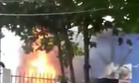13h ngày 20/9, nhiều người trú mưa ở đường Trường Sơn, khu vực gần công viên Lê Thị Riêng, Q.10 đã hốt hoảng khi chứng kiến 1 vụ nổ trạm biến áp xảy ra tại đây.