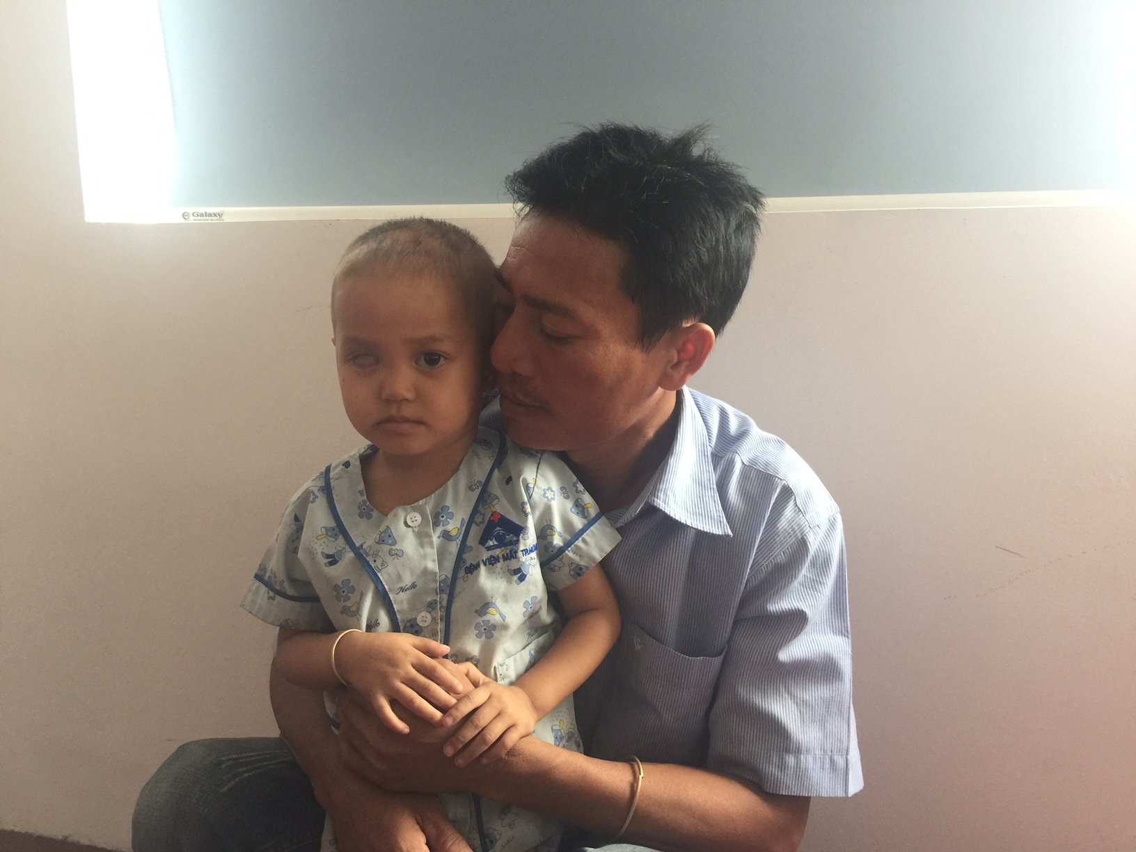 Chia sẻ với chúng tôi, anh Phạm Công Anh cho biết: “Vợ chồng tôi không ngờ cháu mắc bệnh hiểm nghèo này. Lúc đầu phát hiện chỉ là một chấm trắng nhỏ trong tròng đen của mắt rồi nó lan to dần. Cháu vẫn khỏe mạnh bình thường, khi thấy lạ đưa đến BV bác sĩ nói bị ung thư mắt. Cháu đã phải bỏ một mắt chỉ mong cứu con mắt còn lại. Nếu không có tiền điều trị thì không những mất nốt mắt còn lại và nguy hiểm cả tính mạng. Giờ chúng tôi không biết phải làm sao nữa”.