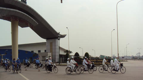 Gần 18h, cả khu trọ rộn lên tiếng gọi nhau í ới đi làm ca, tiếng dắt xe đạp lạch cạch. Dọc con đường đất từ thôn Bầu ra khu công nghiệp, từng đoàn công nhân nối bước nhau...