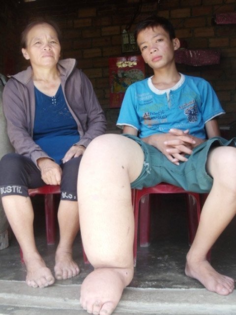 Hai mẹ con cậu bé chân voi sống trong khó khổ không tiền chữa bệnh |