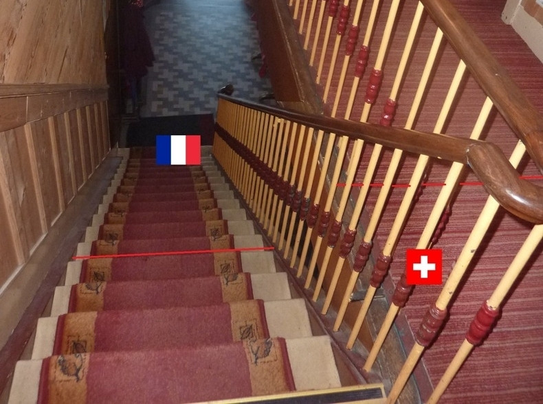 Alexandre Peyron, quản lý khách sạn do gia đình ông điều hành qua nhiều thế hệ, cho biết tại 1 căn phòng khác, mọi thứ đều nằm trên đất Thụy Sĩ, chỉ duy nhất bức tường mang quốc tịch Pháp.
