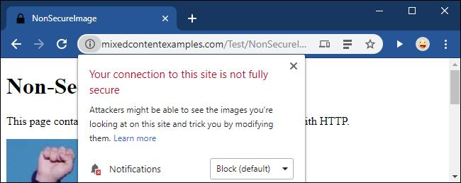 Nếu bạn cho phép tải nội dung hỗn hợp, Chrome sẽ hiển thị dòng chữ Not Secure (Không an toàn) bên trái địa chỉ trang web.