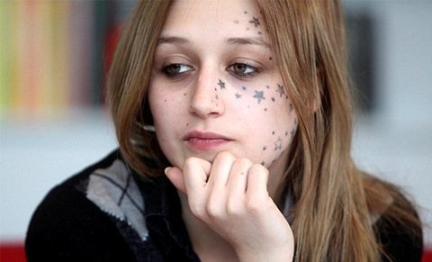 Tuy nhiên, gần 3 năm sau khi cô gái trẻ 21 tuổi này quyết định "gắn" sao lên mặt, các hình xăm này dường như không mờ đi chút nào.