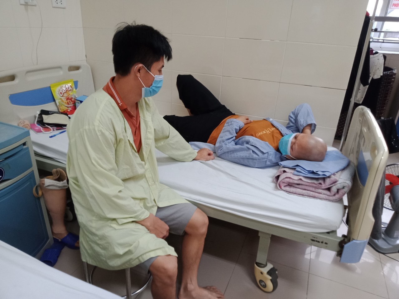 Mẹ tàn tật, bố theo con lên bệnh viện chăm sóc, gia đình không còn bất cứ một nguồn thu nhập nào. Những ngày con vào bệnh viện, anh Hoà tranh thủ chạy xe ôm kiếm thêm chút tiền trang trải. Hiện trên địa bàn tỉnh Phú Thọ đang xuất hiện nhiều ca Covid-19, hai bố con không thể về quê.