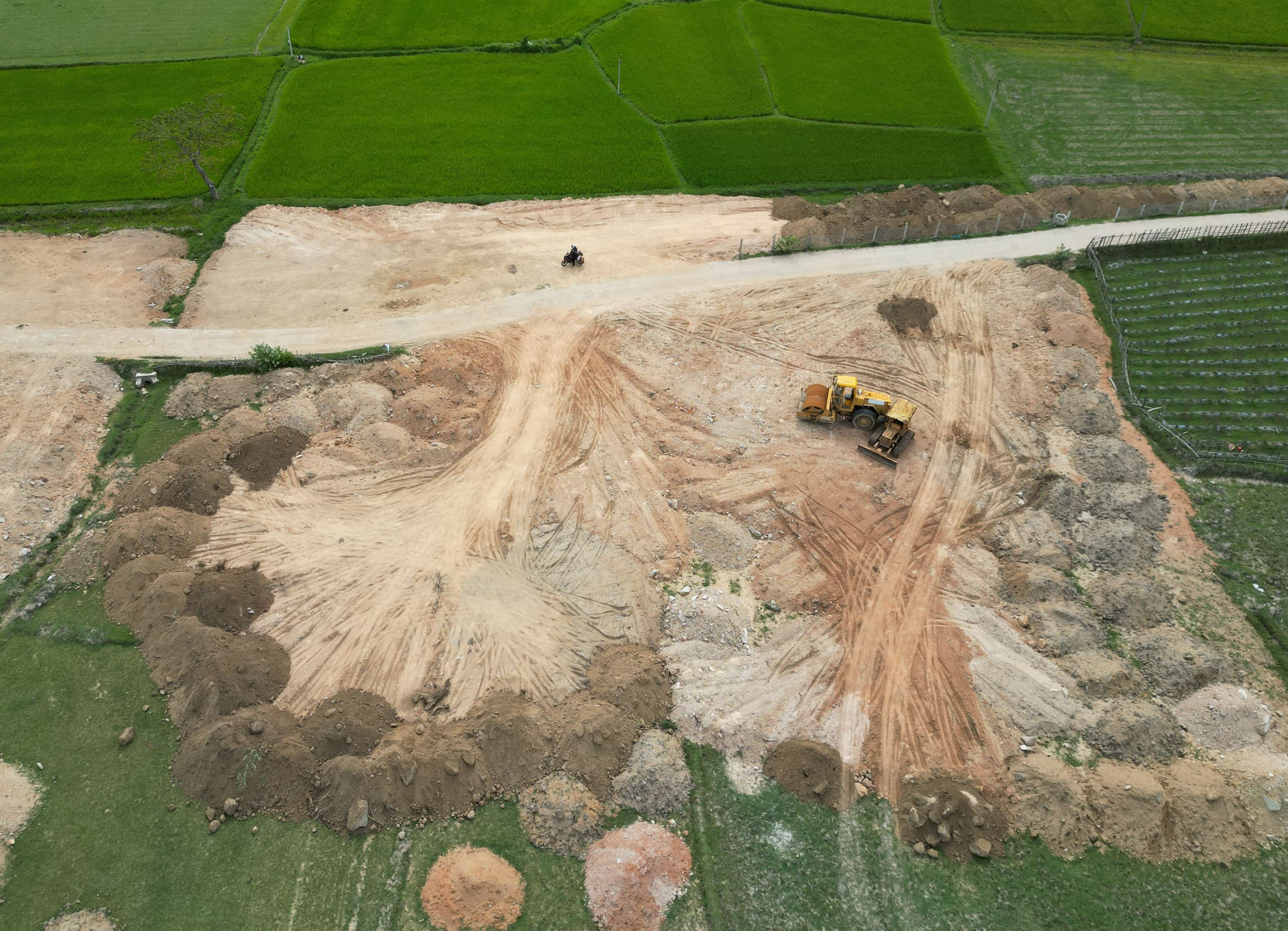Tuy nhiên, đến nay đã bước vào mùa mưa năm 2023, thế nhưng chủ đầu tư và các nhà thầu mới thực hiện cơ bản hoàn thiện phần chỉnh trị dòng chảy thoát nước lưu vực núi Cấm; phần khu tái định cư hiện nay vẫn còn dở dang, nhà thầu mới đổ một ít đất nền.