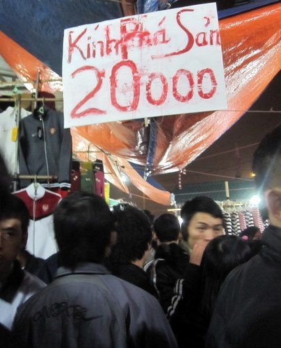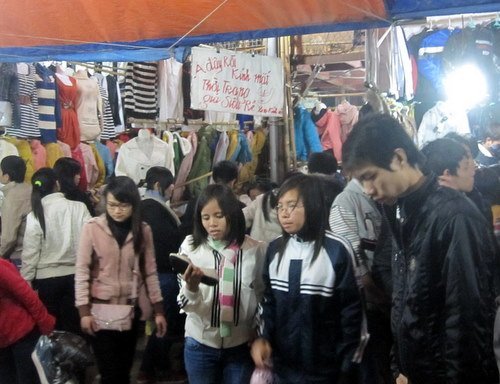 So với ngày thường, lượng người đổ về các khu chợ đêm sinh viên nổi tiếng như chợ Phùng Khoang (Thanh Xuân), chợ Dịch vọng Hậu (Cầu Giấy) dường như tăng đột biến. Những quầy hàng Tết như nhiều hơn, phong phú hơn. Những tấm biển đề giá sản phẩm tuy là “không mặc cả” nhưng vẫn có thể làm khách hàng chú ý bởi mức giá rẻ bất ngờ: Quần bò 120 nghìn, áo khoác 100 nghìn, 150 nghìn, giày 30- 35 nghìn, kính mắt 20 nghìn… Có lẽ, chỉ có ở những khu chợ sinh viên như thế này các sản phẩm mới được niêm yết giá “bèo” đến thế. Các tấm biển “phá sản”, “rẻ bất ngờ”, “siêu rẻ”… đập vào mắt khiến khách hàng tò mò.