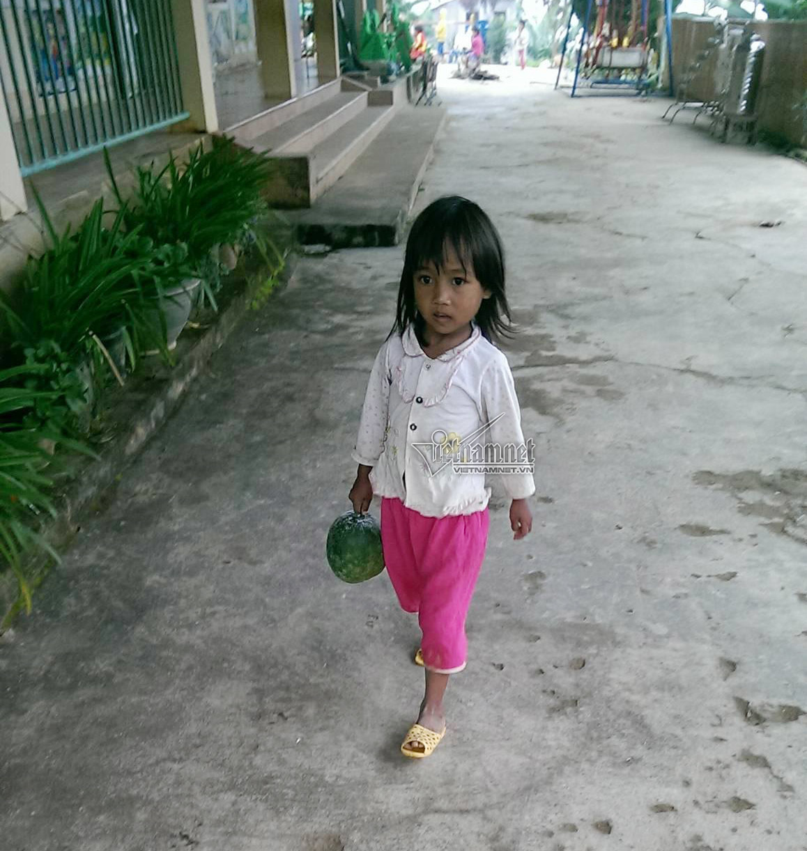 Học sinh mầm non mang rau gia đình trồng được nộp cho nhà trường