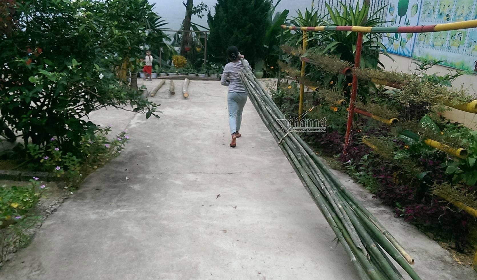 ''Đây là xã nằm trong vùng đặc biệt khó khăn, dân tộc thiểu số được hưởng chính sách hỗ trợ của Nhà nước khi các em theo học. Để tránh sự ỉ lại, mỗi tháng phụ huynh của mỗi cháu nộp thêm 4kg gạo, 20kg củi và rau'' - bà Hồng nói.