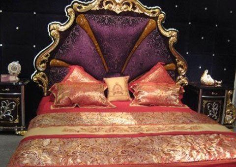 | Bộ giường ngủ dát vàng xung quanh có giá bán 1,1 tỷ đồng. |