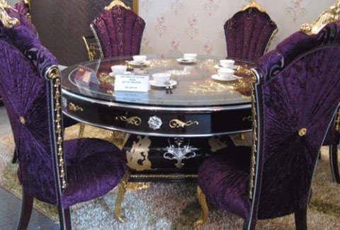 | Bộ bàn ghế dát vàng 24k có giá bán trên 1 tỷ đồng. |