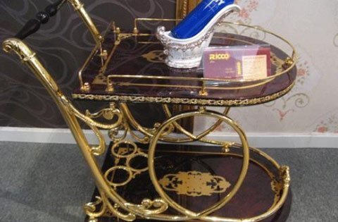 | Kệ đẩy rượu dát vàng có giá trên 60 triệu đồng. |
