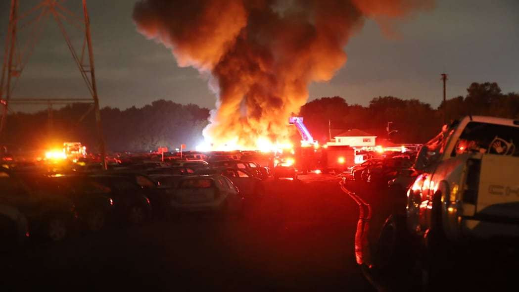 Ngọn lửa đã thiêu rụi hàng chục chiếc ô tô của một công ty đấu giá. Nguyên nhân ban đầu được phỏng đoán là do sét.