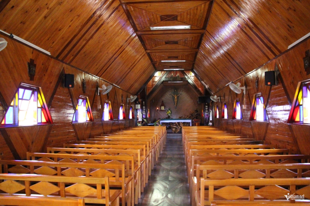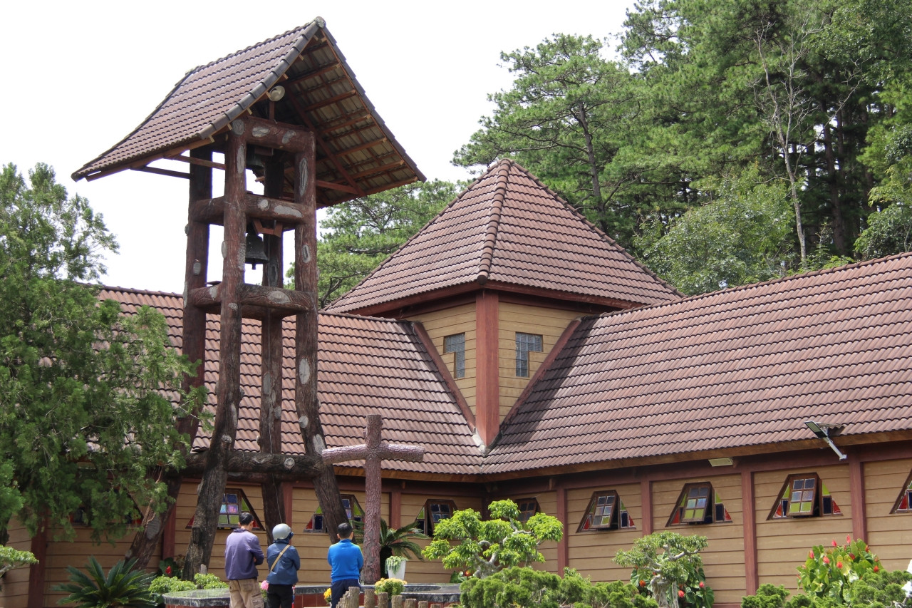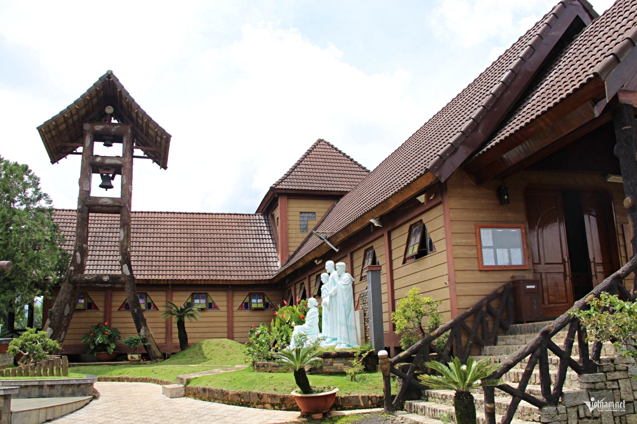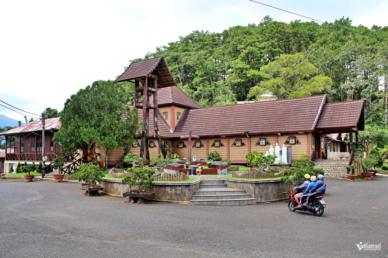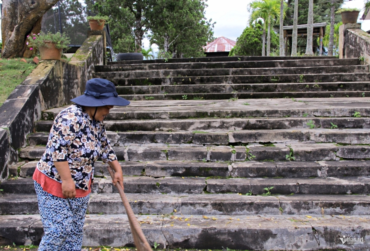 Sau ít phút cầu nguyện, mẹ con bà cầm chổi quét lá rơi trong khuôn viên có nhiều cây xanh và những ngôi nhà sàn xinh đẹp. Bà Điệp cho biết, đây là Khu điều trị phong Di Linh (xã Bảo Thuận, Lâm Đồng).