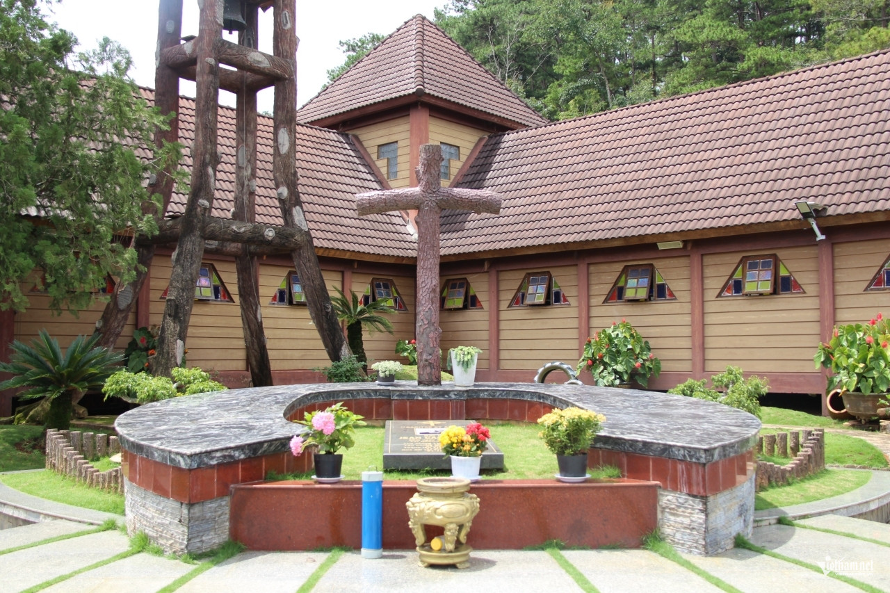 Giữa trưa, vượt qua đoạn dốc quanh co dưới tán thông xanh mát, bà Ka Điệp (45 tuổi) cùng con gái đến trước ngôi mộ của Giám mục, bác sĩ người Pháp Jean Cassaigne.
