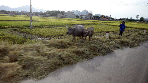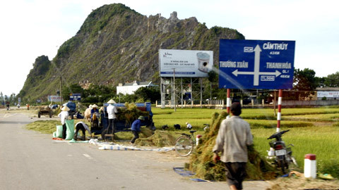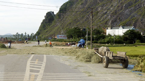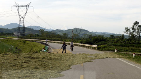 Vào mùa gặt, người nông dân đem lúa lên mặt đường phơi như sân nhà mình.
