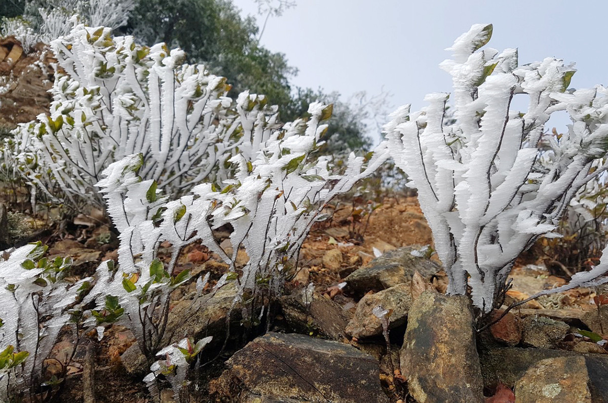Huyện biên giới Kỳ Sơn vừa ghi nhận băng tuyết phủ trắng cành cây. Tại khu vực chân cột mốc 420 trên đỉnh Puxailaileng thuộc bản Buộc Mú (xã Na Ngoi), nhiệt độ nhiều nơi xuống dưới 0 độ C.