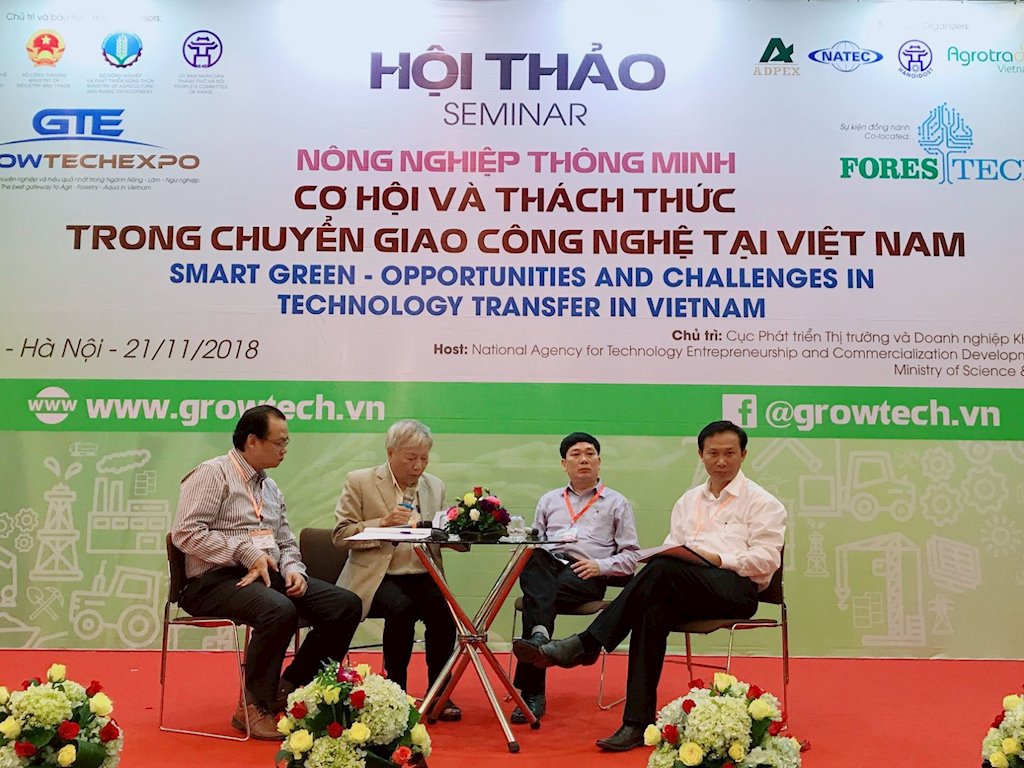 Theo tin từ Bộ Khoa học và Công nghệ, ngày 21/11/2018 đã diễn ra Hội thảo Nông nghiệp thông minh – Cơ hội và thách thức trong chuyển giao công nghệ tại Việt Nam tại Hà Nội. Hội thảo do Cục Phát triển thị trường và doanh nghiệp KH&CN- Bộ KH&CN tổ chức. Đây là một trong những hoạt động nằm trong khuôn khổ sự kiện Triển lãm Quốc tế chuyên ngành thiết bị và công nghệ nông – lâm – ngư nghiệp (GROWTECH năm 2018) để nhằm triển khai Chương trình phát triển thị trường KH&CN đến năm 2020 được Thủ tướng Chính phủ phê duyệt tại Quyết định số 2075/QĐ-TTg ngày 01/11/2013 trong kế hoạch năm 2018.