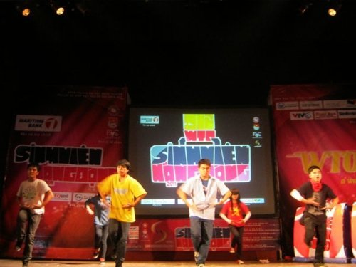 | Tiết mục Hiphop sôi nổi đến từ ĐH Ngoại thương đã “khuấy” động hội trường (Ảnh: TPO). |