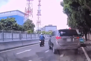 Tình huống được cho là diễn ra vào chiều tối ngày 18/9 trên đường Hoàng Hoa Thám (Hà Nội) và được camera hành trình của ô tô con ghi lại.