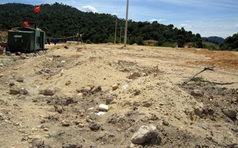 | Hơn 30 chiếc tiểu đã được bốc cất và chôn tạm bên cạnh lán trại thi công |
