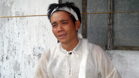 | Chồng chị Nguyễn Thị Thuận đau đớn sau khi vợ con mất. |