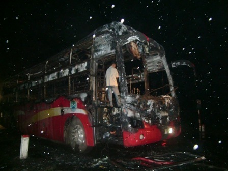 XE KHÁCH CHỞ ĐẦY NGƯỜI BỖNG CHÁY TRONG ĐÊM