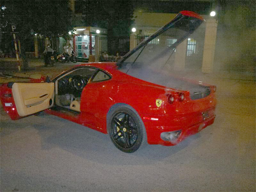Siêu xe Ferarri bốc khói trên đường phố Thủ