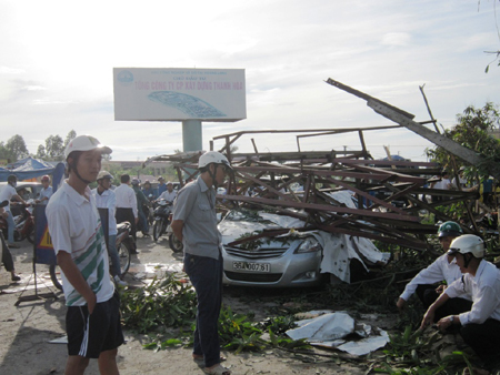Do dông lớn, tại phía bắc cầu Hoàng Long, thuộc địa bàn thị trấn Tào Xuyên, huyện Hoằng Hóa (Thanh Hóa) đã xảy ra một vụ tai nạn khi một tấm biển quảng cáo cỡ lớn bị gãy đổ. Thông tin trên được báo Thanh Niên đưa tin ngày 15/6.