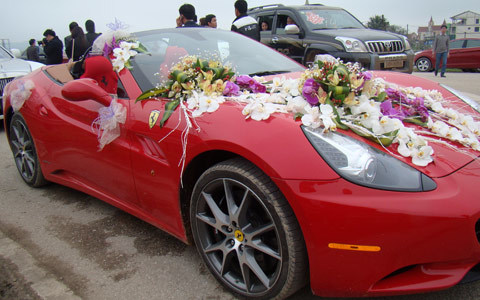 Hai ngày qua, cả phố núi Hương Sơn đã bị rúng động bởi hàng loạt xe khủng giá hàng trăm nghìn đô tấp nập đổ về thị trấn để tham gia rước dâu thiếu gia Nguyễn Huy Hoàng, con nữ thương gia Nguyễn Thị Liễu (Liễu Mạnh).