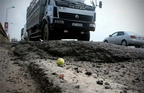 cao tốc Thăng Long - Nội Bài do lại xuất hiện nhiều 'ổ gà', 'ổ voi' trên mặt cầu