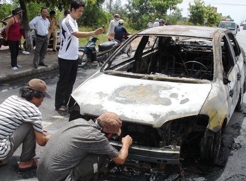 Ô TÔ BỐC CHÁY KHI ĐANG CHẠY TRÊN QUỐC LỘ