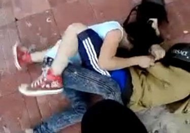 tiếp vào mặt đối phương. Sau đó, một nữ sinh tiếp tục giật mũ bảo hiểm trên đầu