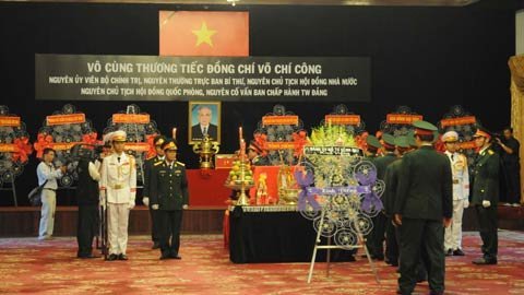 Sáng 10/9, lễ viếng ông Võ Chí Công, nguyên ủy viên Bộ Chính trị, nguyên Thường trực Ban bí thư, nguyên Chủ tịch Hội đồng Nhà nước, nguyên cố vấn Ban chấp hành TƯ Đảng, đã được tổ chức trọng thể theo nghi thức quốc tang tại TP HCM, Hà Nội và tỉnh Quảng Nam - quê hương ông.