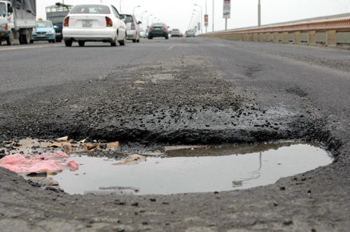 'Vật lộn' với ổ voi trên cầu Thăng Long