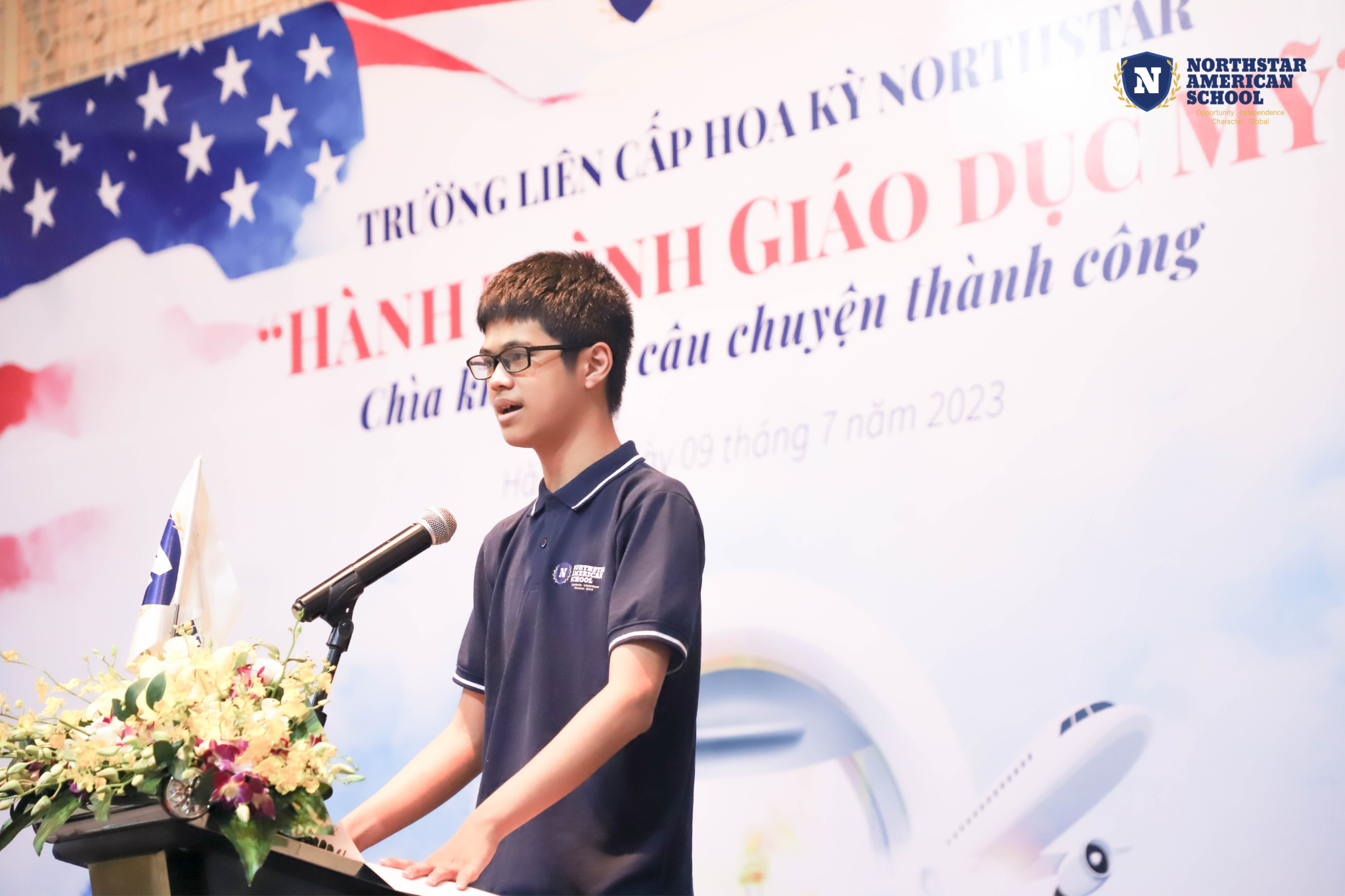 Buổi lễ trao học bổng là dịp để vinh danh học sinh xuất sắc của nhà trường, cùng nhìn lại một năm học thành công và khởi động cho Ngày hội khai giảng năm học mới vào tháng 9/2023. Ông Nguyễn Vũ Michael, Tổng Giám đốc Boeing Việt Nam cùng cô Hà Ngọc Anh - Chủ tịch Northstar American School đã trao giải thưởng cho các học sinh xuất sắc trong năm học.