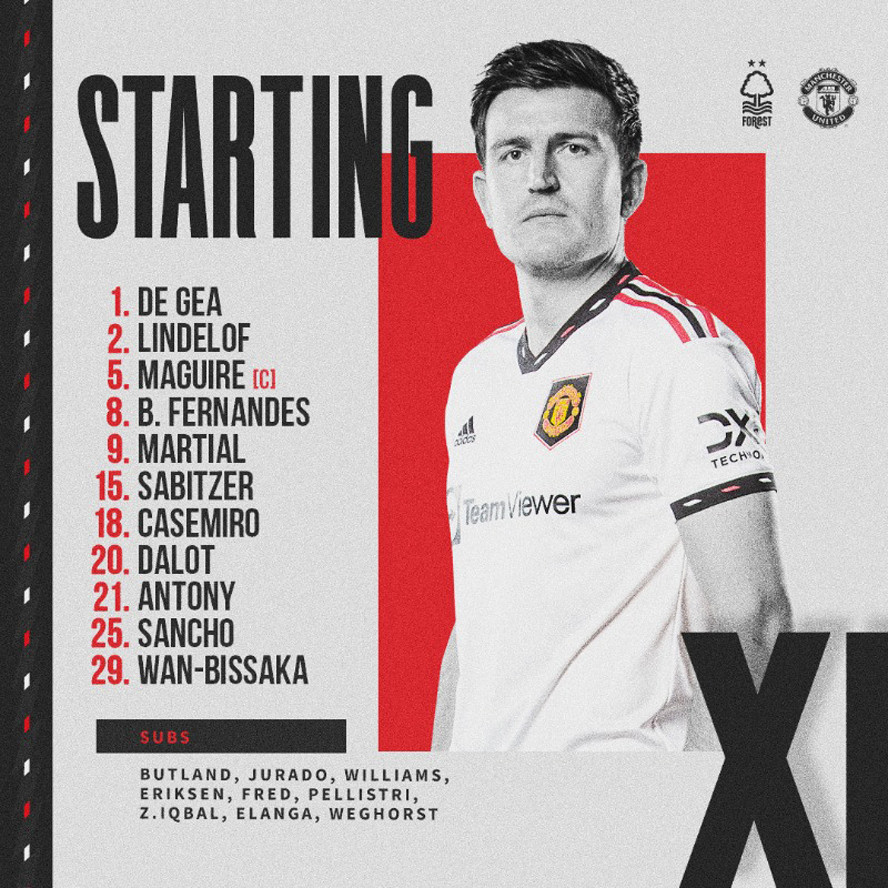 MU: De Gea; Wan-Bissaka, Lindelof, Maguire, Dalot; Fernandes, Casemiro, Sabitzer; Antony, Martial (Weghorst 71'), Sancho.